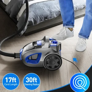 Canister Vacuum Cleaner 1600W – 40KPa Powerful Suction, 3.7QT Large Dust Cup, HEPA Filtration for Pet Hair & Carpets