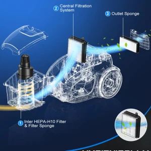 • Dual H13 HEPA Filtration System – Captures up to 99.97% of microscopic dust and allergens, releasing cleaner, healthier air back into your living space.