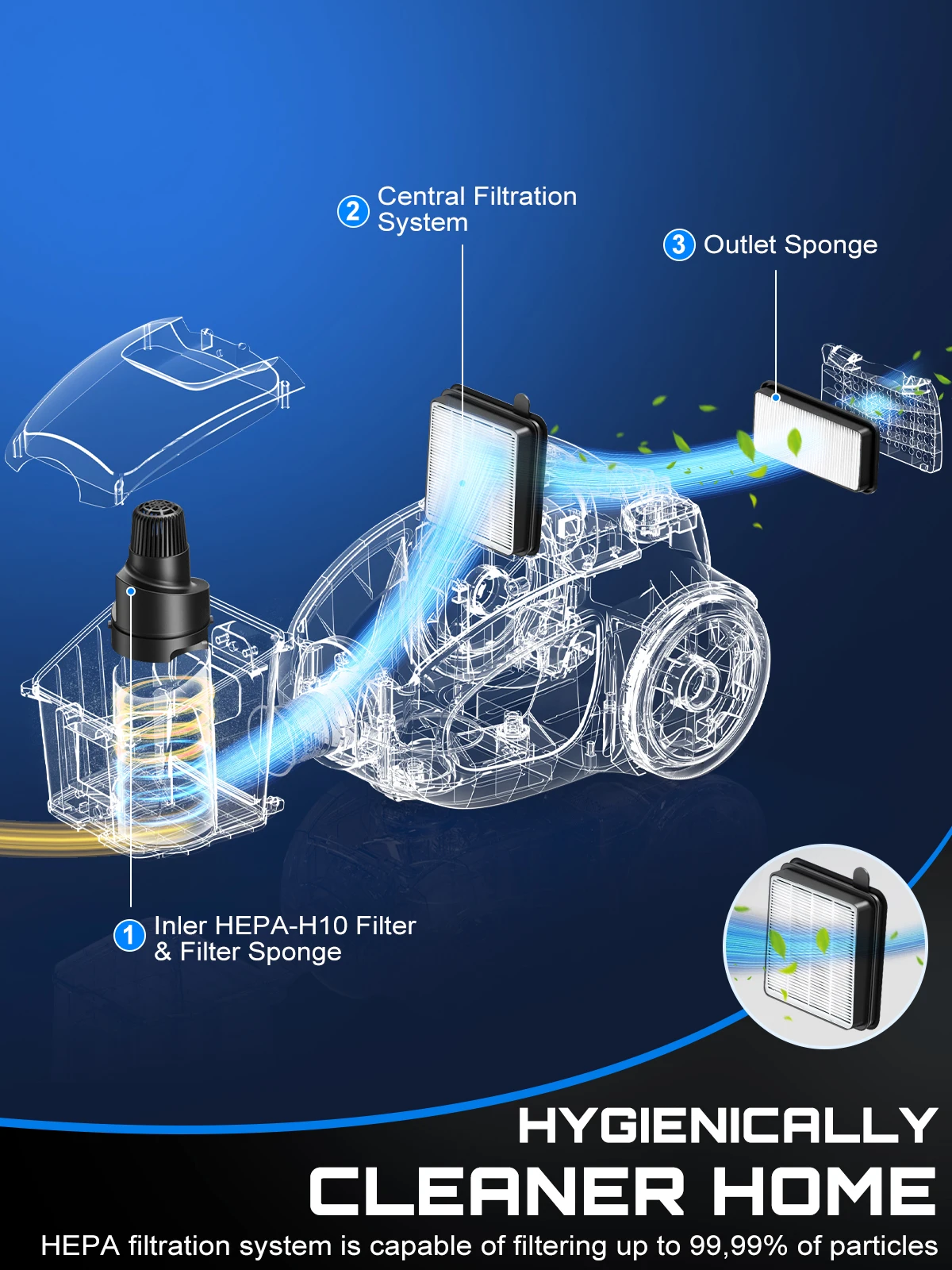• Complete Cleaning Tool Set – Includes floor nozzle, upholstery tool, dust brush, pet tool, and extra HEPA filter to handle every surface and cleaning task with ease.