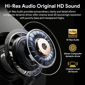 Hi-Res Cinema-Level Audio – Large 40mm composite dynamic drivers with titanium-plated diaphragm deliver powerful bass, crystal-clear mids, and spacious 3D sound.